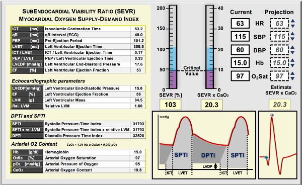 myocardial oxygen supply: demand index by adjusting SEVR for the arterial content of oxygen and the relative left ventricular mass.