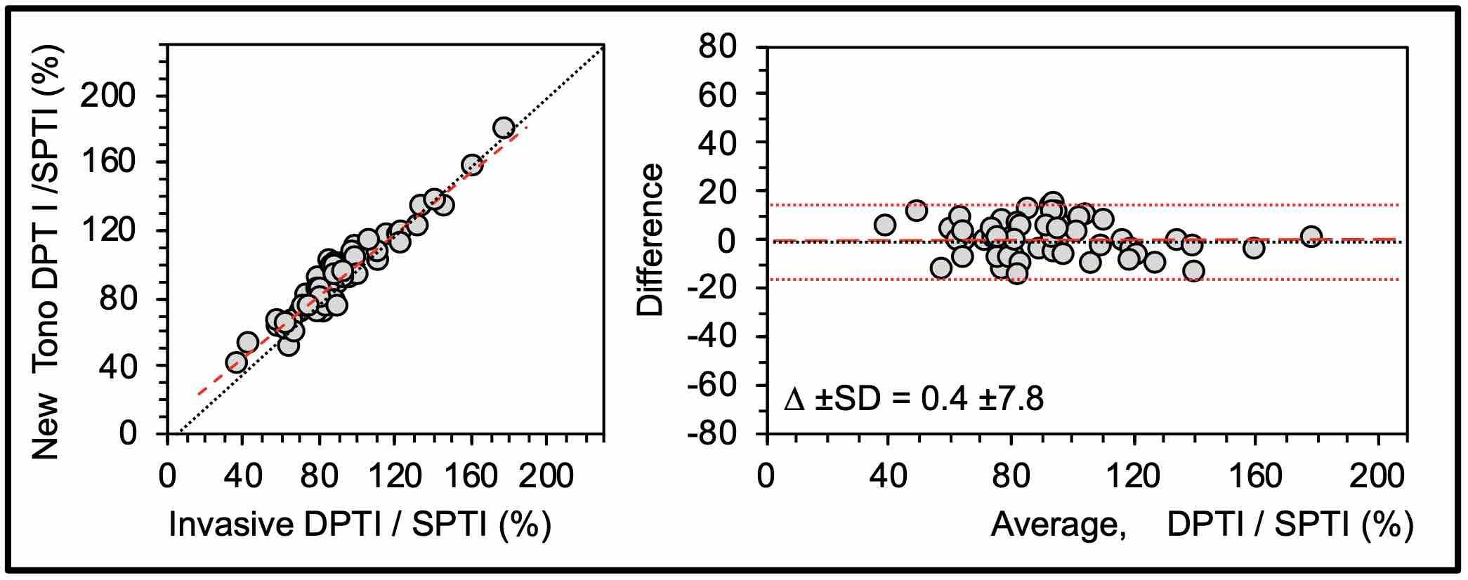 SEVR values provided by the PulsePen showed an excellent agreement with the invasive determination of SEVR: average of differences ±SD = 0.00 ±0.08 (limits of agreement: -0.15 to 0.16).