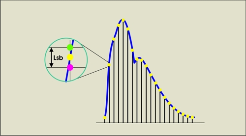 image above will be replaced by the nearest between the violet one and the green one. The minimum interval between possible vertical values corresponds to one LSB, i.e.